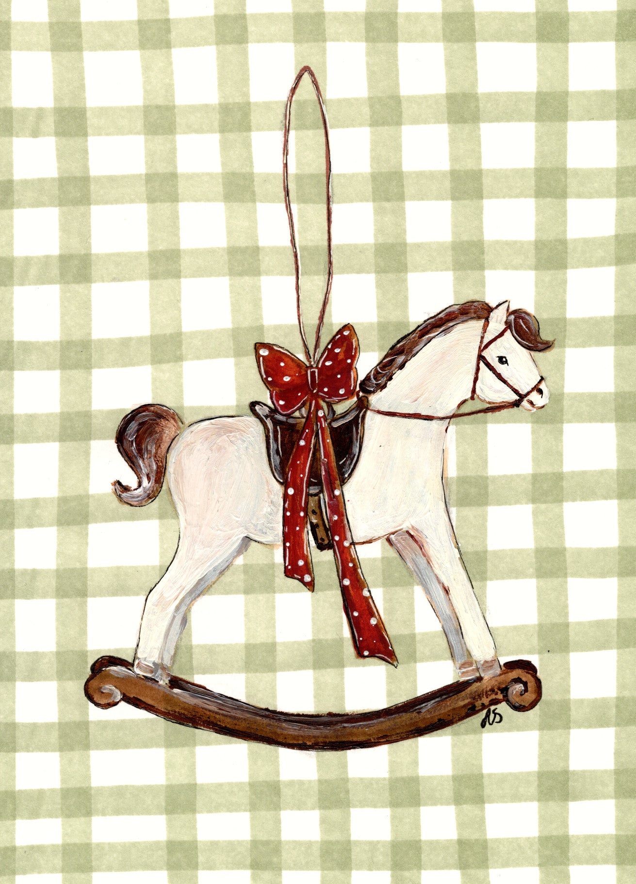 Joulukortti - Keinuhevonen