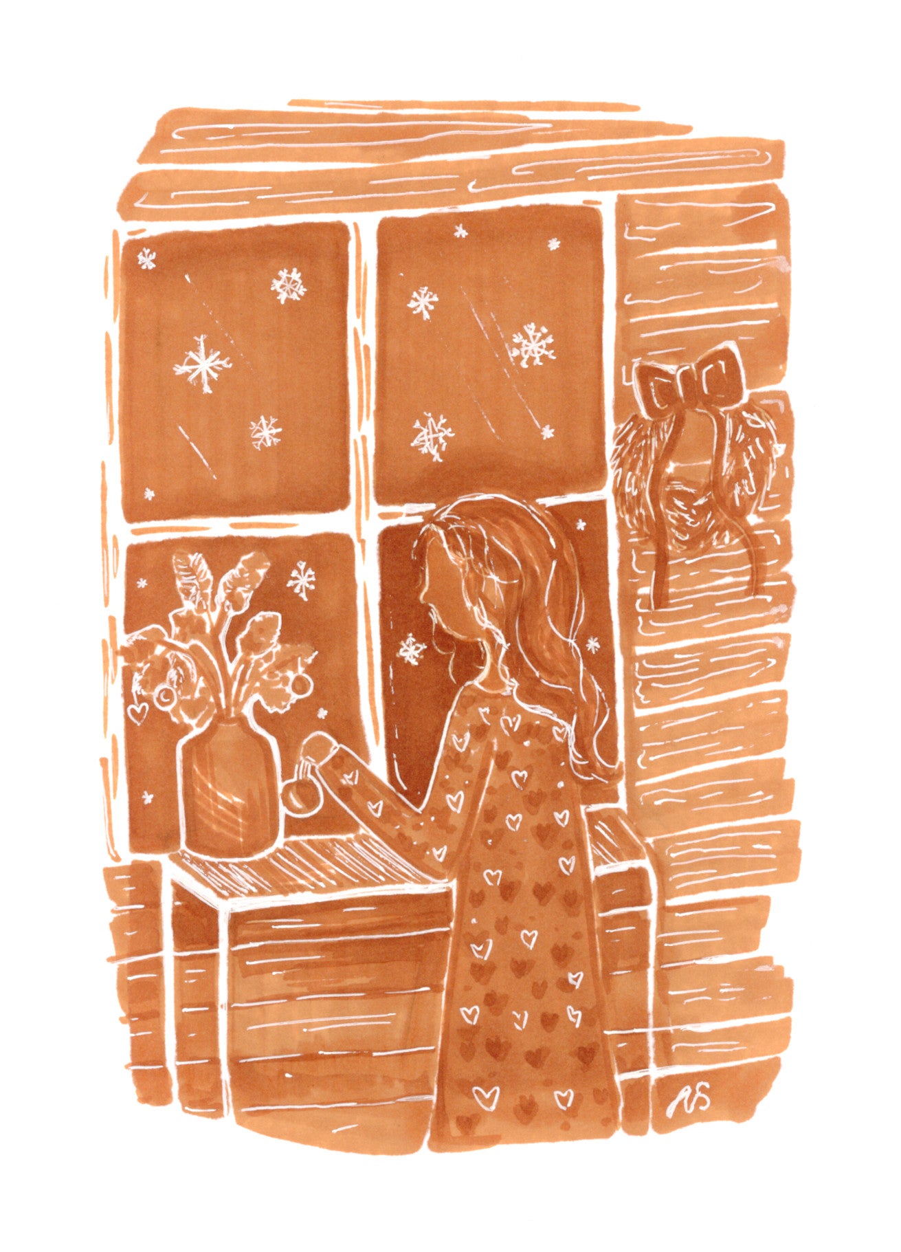 Joulukortti - Tyttö ikkunalla